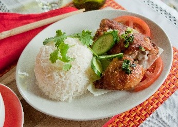 Crispy skin chicken with steamed rice