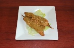 Marinated chicken skewered served with satay sauce. There are 2 skewers per serve.